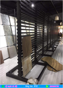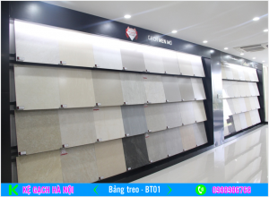 Bảng treo gạch là loại kệ gạch có công dụng trưng bày các sản phẩm gạch tại các showroom. Sản phẩm này sẽ gây ấn tượng với khách hàng vì có thể trưng bày được hết các mẫu gạch. Đồng thời khi đầu tư mẫu bảng treo gạch này khách hàng sẽ không sợ lỗi mốt. Hiện tại trên thị trường có nhiều sự lựa chọn khi mua bảng treo gạch với nhiều loại mẫu mã. Nếu bạn còn đang phân vân chưa biết lựa chọn mẫu nào thì hãy xem qua những sản phẩm của chúng tôi dưới đây nhé.