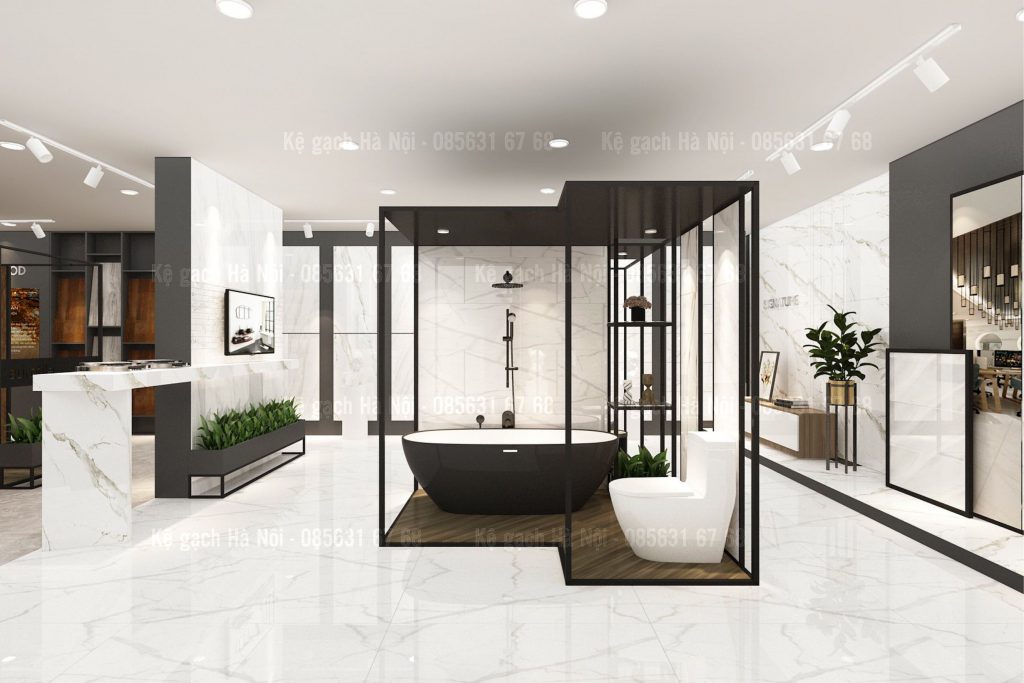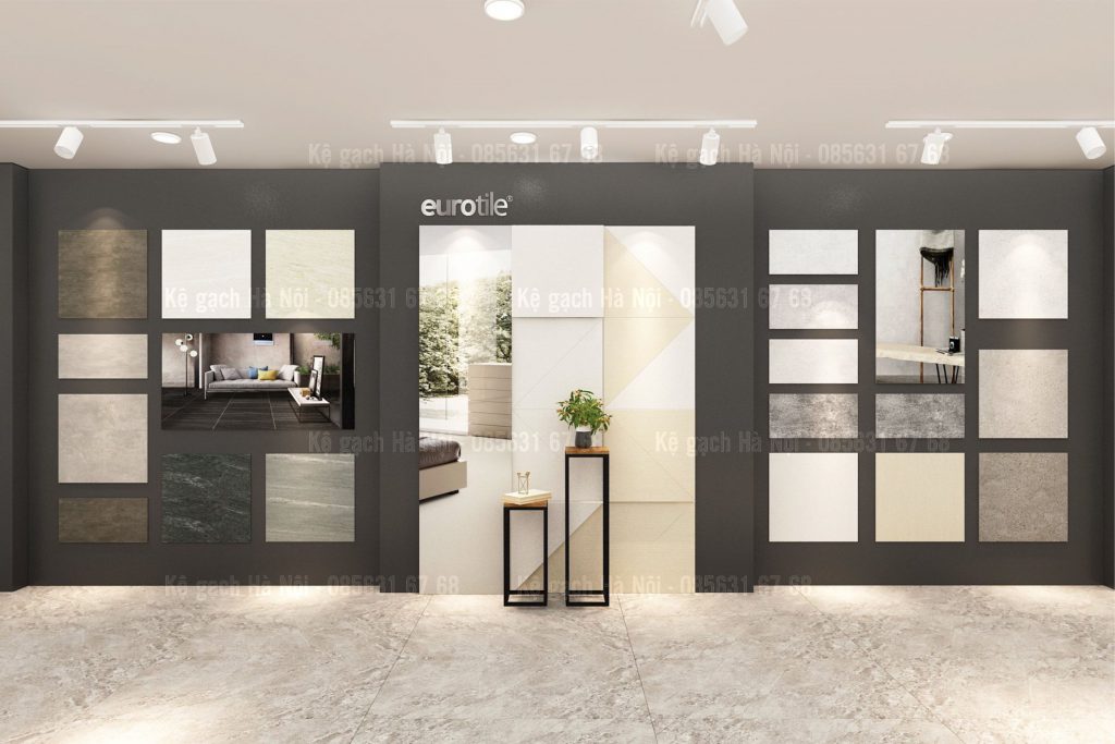 Showroom gạch Eurotile | một showroom gạch cao cấp thiết kế phong cách châu âu đẳng cấp nhất Việt Nam, góc nhìn Panorama 360 độ tuyệt vời, không thể bỏ qua mẫu thiết kế này dành riêng cho các showroom gạch ốp lát cấp và siêu thị vật liệu xây dựng. Kệ gạch Hà nội cung cấp các giải pháp thiết kế trưng bày gạch hàng đầu tại miền bắc. thiết thế thi công hoàn thiện các showroom gạch ốp lát mang phong cách hiện đại, tinh tế.